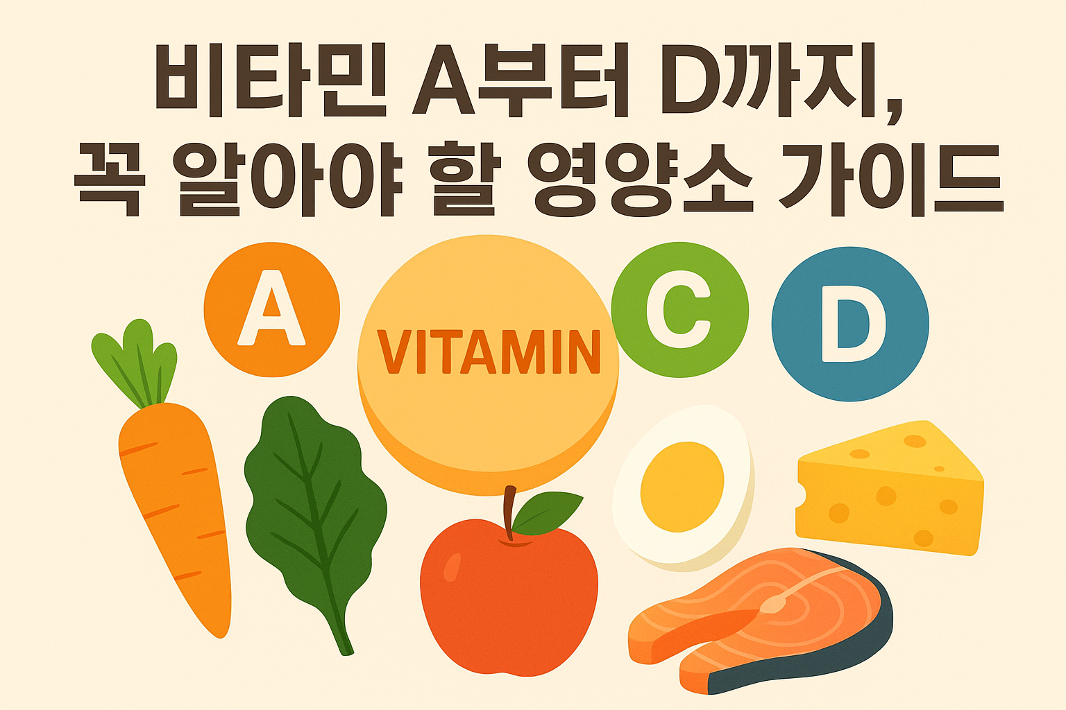 우리 몸은 하루하루 필요한 영양소를 골고루 섭취해야 건강을 유지할 수 있습니다. 특히 비타민은 신체 기능을 원활하게 하고, 질병 예방과 면역력 강화에도 큰 역할을 합니다. 이번 글에서는 비타민 A, B, C, D의 역할과 결핍 시 나타나는 증상, 그리고 음식으로 섭취하는 방법까지 자세히 안내합니다. 건강한 생활을 위해 꼭 알아두어야 할 필수 영양소 가이드입니다.